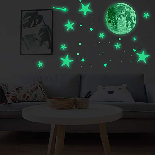 【Veel gebruikt】 De muurstickers met sterren en maan zijn perfect voor de wanddecoratie van de kinderkamer, deze maan en de gloeiende sterrenset zijn een briljant cadeau voor volwassenen en kinderkamers. Deze mooie ruimtedecoratie is geschikt voor elke kamer, gladde muur of plafond en kan worden genoten als een geschenk voor kinderverjaardag, babyshower en feestartikelen.