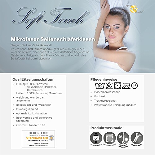 Beddengoed serie Soft Touch, wasbaar tot 95 graden Celsius, geschikt voor de droger, onderhoudsvriendelijk, Oeko-Tex Standard 100, met een breed scala aan kussenformaten, maten en vulgewichten