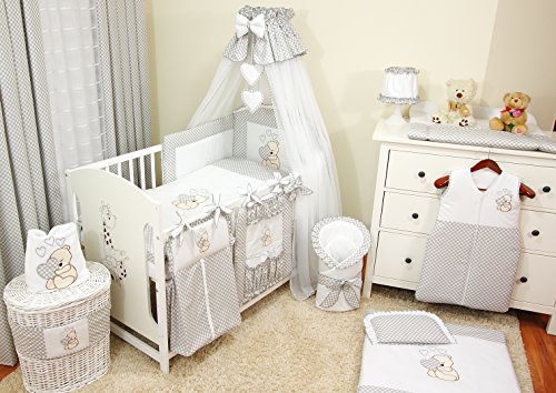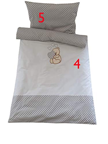 Babybeddengoed, 10-delige set, beddengoed, 100% katoen met teddy/beer, geborduurd motief, voor meisjes of jongens.