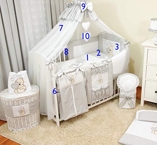 10-delige set, babybeddengoed, met teddybeer geborduurd motief, voor meisjes of jongens.