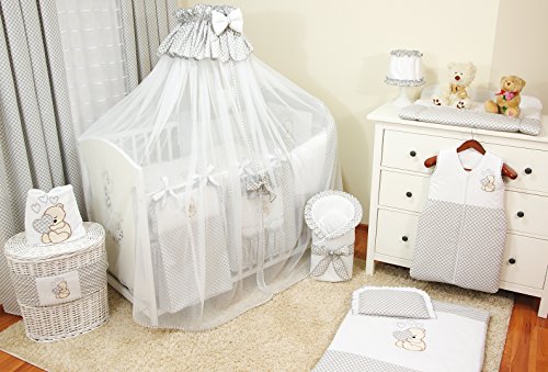 Specification: Babybeddengoed, complete set XL, 10-delig, beddengoed, 100% katoen met borduurwerk + muggennet, met geborduurd motief…