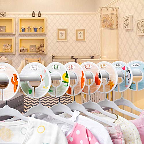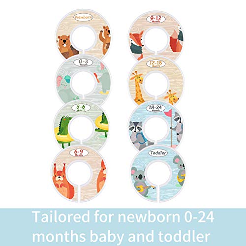 Eenvoudig babykleding organiseren: de unieke leeftijdsaanduiding en de verschillende dierafbeeldingen van de 8-pack voor babygarderobes kunnen je helpen snel de gewenste kleding te vinden. Uitstekend geschikt om babykleding te organiseren en op leeftijd te sorteren, zodat ze voortdurend groeit.