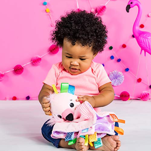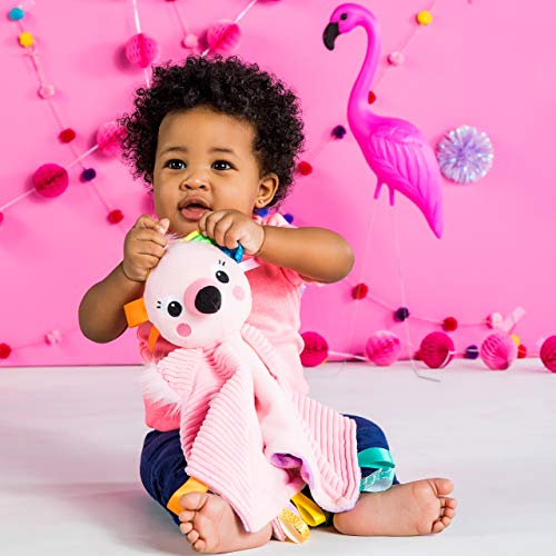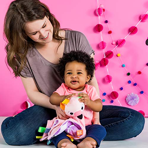 Wat is roze en zacht en rondom knuffelig? De nieuwe flamingo-vriend van je baby van Bright Start! Dit schattige knuffeldier is een veiligheidsdeken die je baby overal zal kalmeren. Hij is voorzien van onweerstaanbare labels en je baby zal de troostende structuren van deze vrolijke metgezel bijzonder graag voelen. Dit dubbelzijdige materiaal beschikt over verschillende structuren en patronen die je baby kan omarmen en knuffelen.