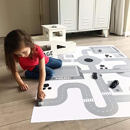 circulor Grote straatspeelmat, 130 x 100 cm, mat, puzzelmat voor kinderen, auto, speelmat voor straatkinderen politie