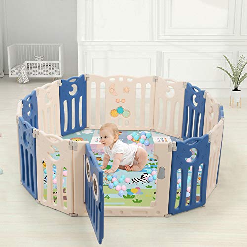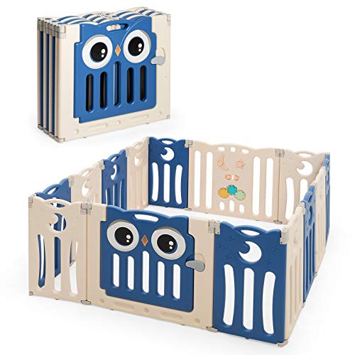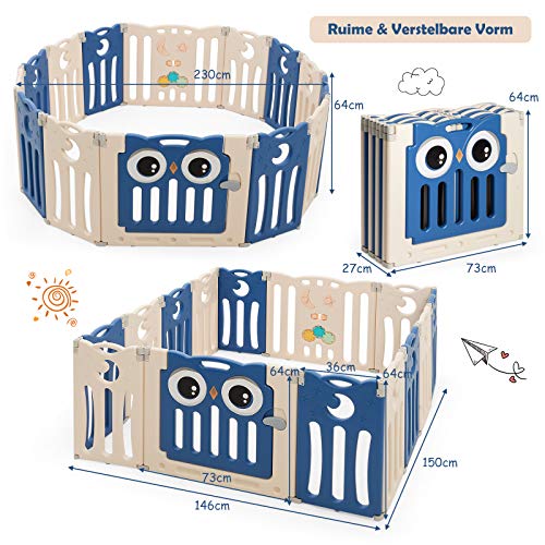 COSTWAY Grondbox baby, 14 HDPE paneel speelbox babybox, opvouwbare baby speelruimte met veiligheidsslot & educatief…