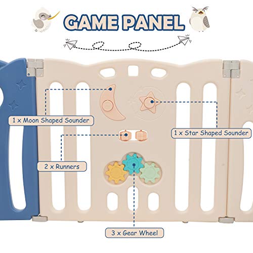 【Puzzel spelbord】Er zijn versnellingen, klinkende ster en klinkende maan op het spelpaneel, die gunstig zijn voor de uitoefening van baby’s cognitieve vermogen en sportieve vaardigheden. Terwijl het geven van kinderen de ruimte om zelfstandig te verkennen, ouders hebben ook tijd om huishoudelijk werk, rust en werk te doen.