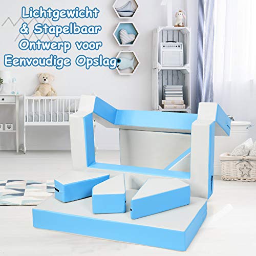COSTWAY Kinderen 4-In-1 Multifunctionele combinatie bank set, Veelzijdig kindermeubilair, Kleurrijke Bouwblokken…