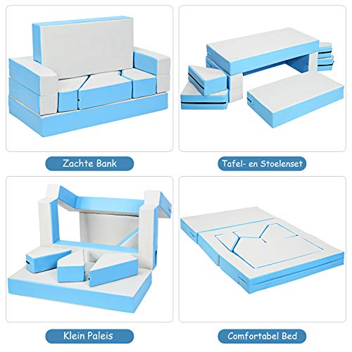 【4-in-1 creatieve combinatie】Deze veelzijdige bankenset is vrij te combineren tot verschillende vormen. Het kan uw bank, bed, tafel en puzzel zijn volgens uw combinatie. Dit meubilair kan voldoen aan veel noodzakelijke behoeften van gezinnen met kinderen. Het creatieve ontwerp zal uw persoonlijkheden aan de bezoekers laten zien.