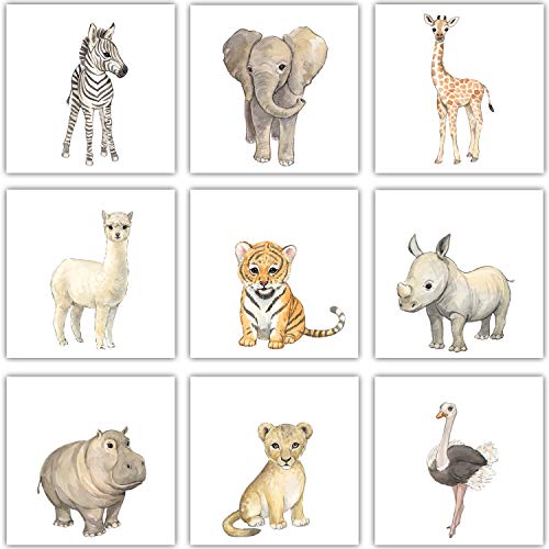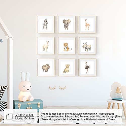 Frechdax® Set van 9 posters voor de kinderkamer, babyfoto’s, 13 x 13 cm, bosdieren, safari, Afrika, dieren, poster…