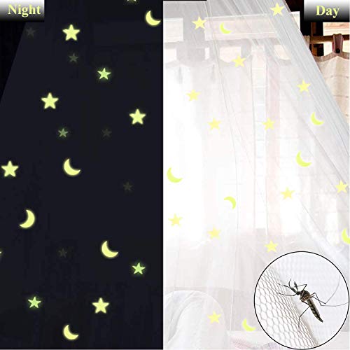 ⭐【Klamboe voor bed met lichtgevende sterren en maan】 Ons muggennet bestaat uit 38 sterren en 38 manen, die ’s nachts kunnen gloeien. Opmerking: het moet voldoende licht absorberen om ’s nachts te schitteren, zodat je de slaapkamerverlichting moet inschakelen voordat je gaat liggen, zodat de sterren het licht kunnen absorberen. Wanneer u’s nachts slaapt U zult in staat zijn om de romantische fonkelende sterren te zien, dan zal de helderheid verdwijnen