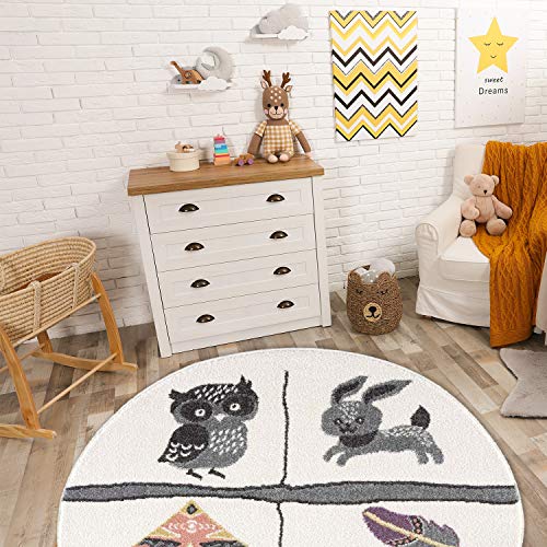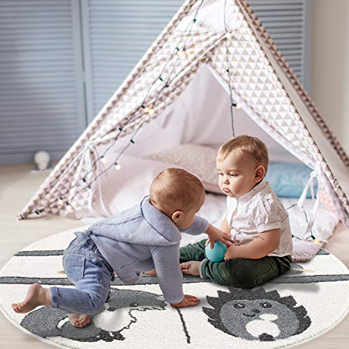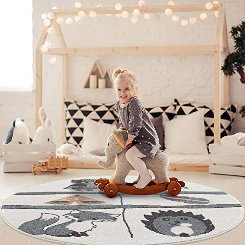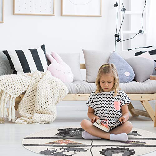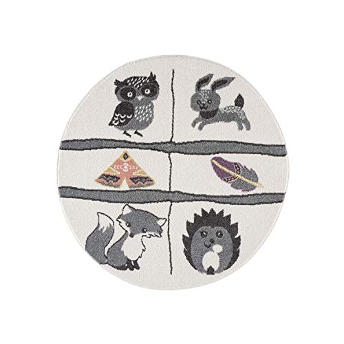 Specification: payé Vloerkleed rond kinderkamer – crème – 120x120cm – speeltapijt met schattige bosdieren laagpolig kindertapijt…