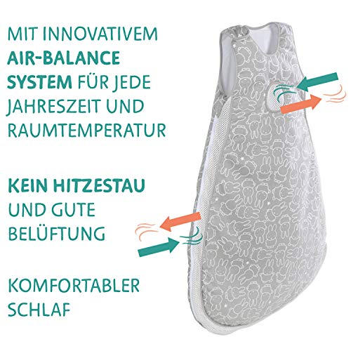 safe asleep van Roba slaapzak Easy Air babyslaapzak “miffy” maat 56/62 cm, 100% katoen, geweven, bedrukt, zachte vulling 100% PES, mesh-inzetstukken, AIR-balanssysteem