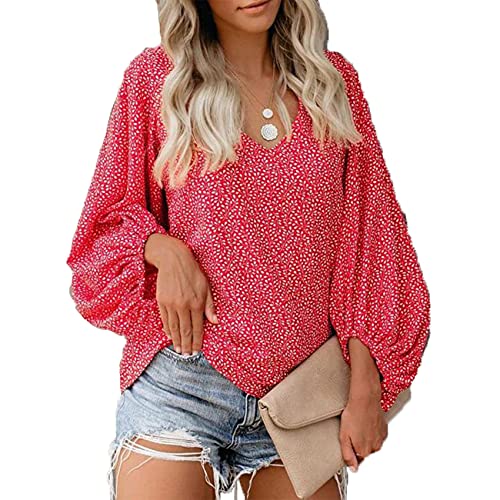 Specification: XYJD Lente en zomer dames casual Hedging Fashion V-hals bloemenprint losse lantaarn mouwen blouse dames